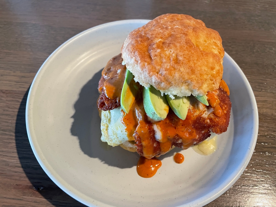 buttermilk fried chicken, american cheese, hardwood bacon, honey butter (cover it in maple syrup if you like)