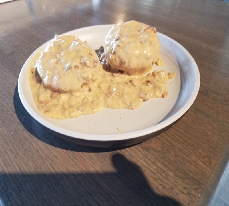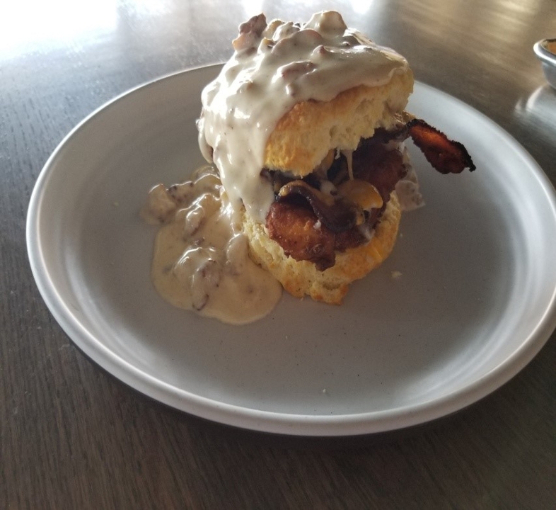 homemade sausage gravy , add eggs your way +4.50 add chicken +4.50