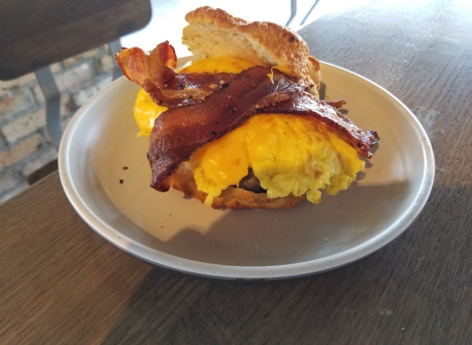 scrambled eggs, american cheese (choice of bacon, ham, sausage or chicken sausage)