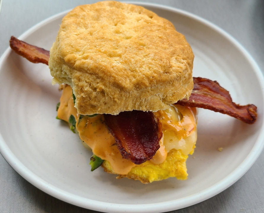 bacon, pepper jack, scrambled eggs, avocado, sriracha mayo & griddled jalapeños